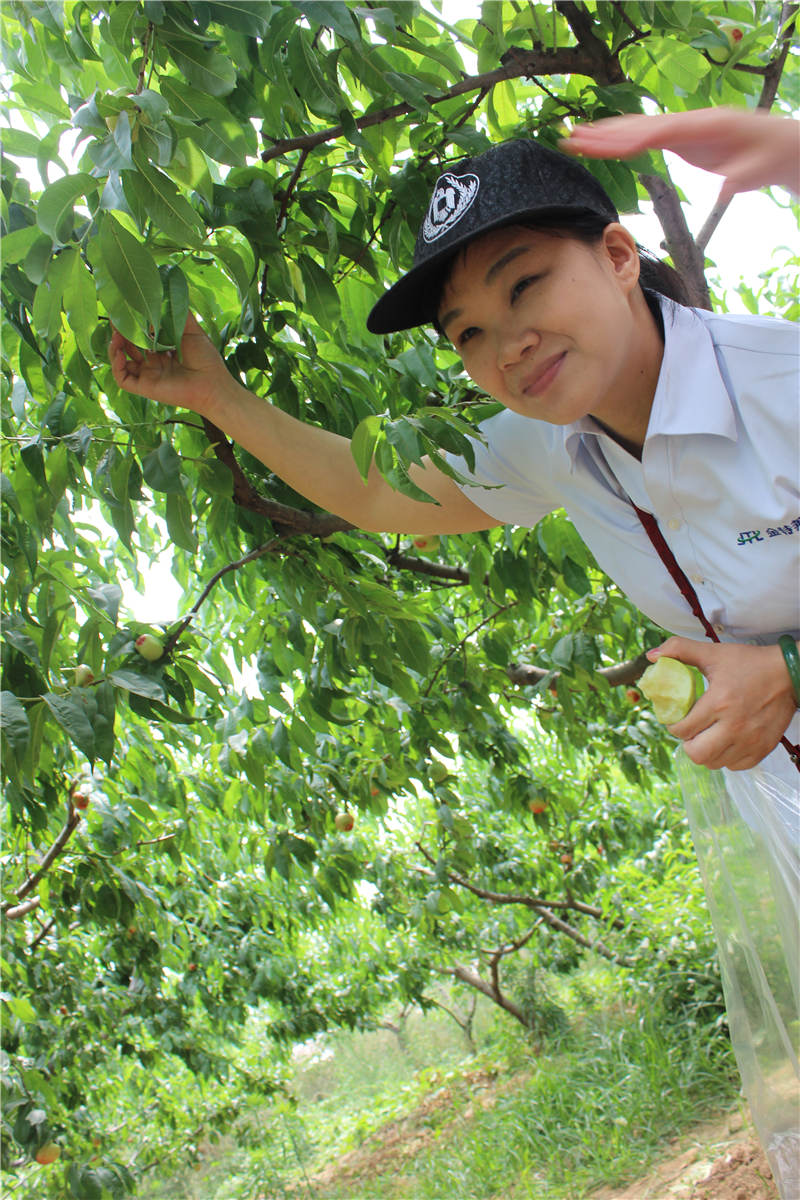 片刻休整后,采摘活動正式開始。大片的油桃樹,上邊掛著青的、黃的、紅的,大的、小的各種油桃,讓人垂涎欲滴。大家來不及裝進袋子,等活動結束再吃,都迫不及待的摘下來,或簡單擦拭、或用少量礦泉水簡單清洗,馬上就開伙,連黃總:吃多了拉肚子的警告都當了耳旁風。