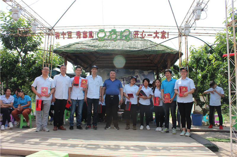 早晨8:30,陽光明媚,柳條舒展,迎著初晨的朝陽,伴著和煦的暖風,滿載員工的旅游車從公司門口出發,10點到達目的地----新鄭種瓜得豆農場。一路上公路涼皮的建筑和田園風光令大家心情舒暢,農場大片的綠色植物讓大家在大門口都能感覺到夏日的芬芳。