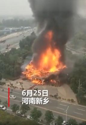 6月25日早上,在新鄉市平原示范區太行大道與長江大道交叉口,西北角的云松·金域藍灣售樓部突發火災,大火將售樓部燒成骨架,大火被撲滅沒多久,售樓部旁的道路就被人阻斷,車輛無法通行,而火災現場也被緊急清理。